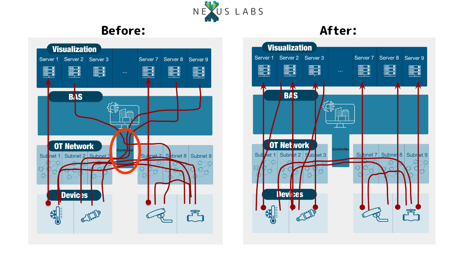Packet-level analysis through Optigo Network's Visual BACnet tool eventually revealed repeated âbusy routerâ messages associated with a single Allerton controller, which served as the bridge between two sides of the campus. The controller wasnât misconfigured, and no system was incorrectly integrated. However, as the system had evolved over the years, network traffic patterns between FDD and BAS became suboptimal, allowing the problem to slip through the cracks.